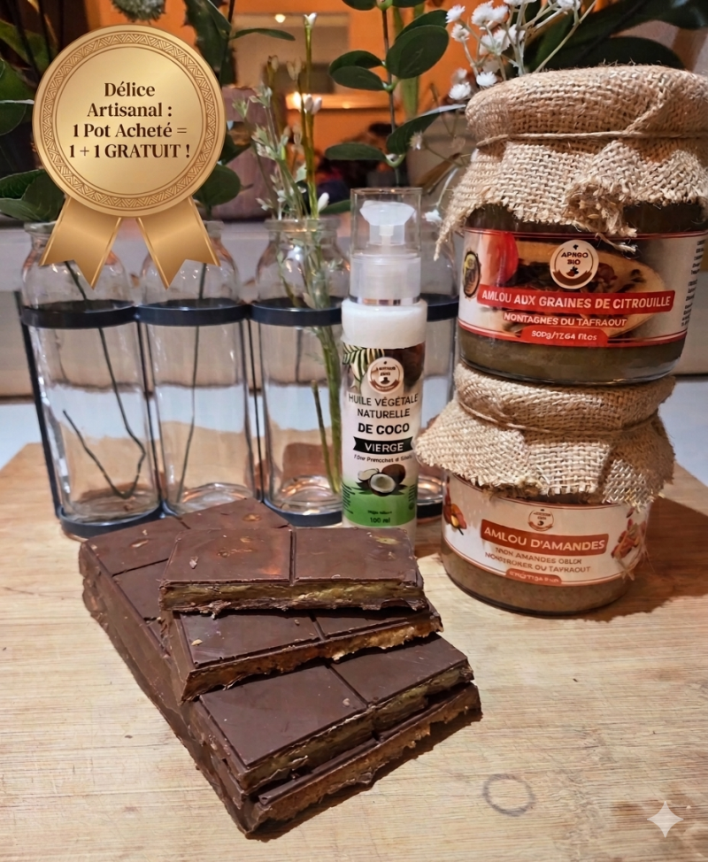 Offrez-vous une touche d’authenticité avec nos produits Aphro-bio, comme l’huile d’argan ou l’amlou, parfaits pour sublimer vos petits-déjeuners, goûters ou salades. Un vrai plaisir naturel, à savourer au quotidien.